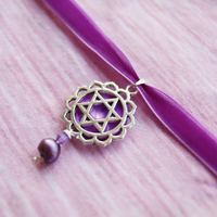 The Purple Pearl diver Mayim Magen Necklace is an elegant and timeless piece of wearable Judaica inspired by the sea. Featuring custom fitted shell pendant backing paired with purple vintage freshwater pearl and crystal, this one of a kind piece of wearable art channels the sea no matter where you are in the world. Complete the look with our Rosewater Pearl Mayim Magen Statement Earrings and stun in this one of a kind set.