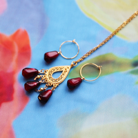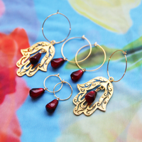 Nothing communicates abundance like the symbolic beauty of the pomegranate, now available in two sizes. Pom seed hoops minis are the perfect gift for children or for those of us who love smaller pieces of elegant jewellery or have multiple piercings to showcase different sized earrings. Handmade pomegranate seeds adorn gold plated hoops to make a simple and elegant statement. Complete the look and pair with our Shmita Pomegranate Seed Choker or gold Shmita Pomegranate Seed Necklace.