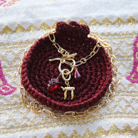 Toast the new year with a L'chaim with our Chai and Seven Species Charm Necklace. Front closure clasp necklace adorned with removable gold Chai, Kedem-inspired glass grapes, and handmade pomegranate seed charms.