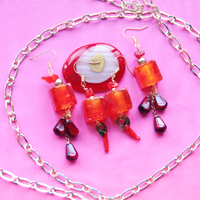 Forged in flames to form fierce wearable statement art, these one of a kind statement earrings feature beautiful fused glass ombre cubes adorned with red tourmaline and handmade glass chilli peppers. Keep warm this winter with these fierce ear adorments.