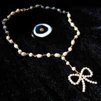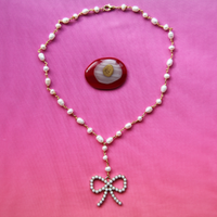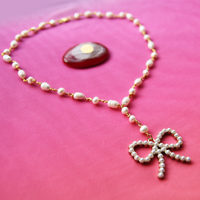This gorgeous one of a kind necklace is truly the bow on top of any outfit you pair it with! Made with salvaged vintage bronze, gold, and lovingly handbeaded with glass and freshwater pearl to create a baroque, breathtaking piece to adorn yourself.