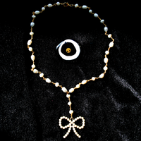 With a Bow On Top Vintage Gold and Pearl Statement Necklace
