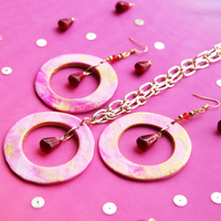 This collection's Pom de résistance is this Pomegranate Molasses Statement Necklace. Made with custom pink, white, and fuschia marbled clay with gold accents and adorned with a beautiful glass pomegranate seed, presented on a thick gold paperclip chain.