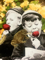 Trick or Treat! Or in this case, share your treats or you're in for a tricky time. Vintage black and white cuttings mixed with vibrant nature material and hand-painted accents to capture both the nostalgia and whimsy of childhood Halloween.