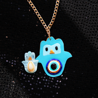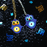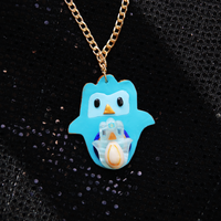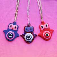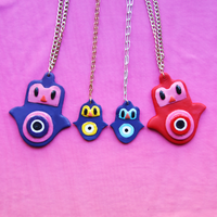 Let us know what colours you'd like used for your penguin and evil eye and your custom Hamsa will be handmade to order with the option as a statement necklace, wall-hanging, or keychain. All necklaces are presented on 14k Cuban chain to make a wintery protective statement piece.