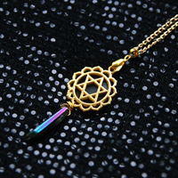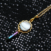 Night Sky Shell and Rainbow Quartz Reversible Gold Mayim Magen Necklace
