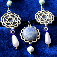 This one of a kind design is inspired by the Jewish history of perseverence in the face of oppression and the invention of cryptic Judaica in the face of forced conversion. Wear this design with your magen david proudly facing outwards, or turned over to reveal a beautiful handmade sodalite floral pendant. Either way you choose to wear it, feel empowered knowing you're wearing judaica your way!