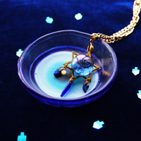 This pendant is fastened to the velvet choker with an easy to adjust silver-plated pinch bail that you can manually open and close with jewelry pliers or your fingers in order to reverse the pendant. Simply open the clasp just enough to slide the pendant off, then turn the pendant around and close the clasp back over the pendant enclosure. You may need to squeeze it with strong pressure to ensure the pendant is secure. If you wish to transfer your pendant to a chain you may use the same method to remove and replace as desired