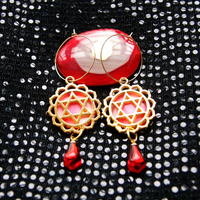 Treat yourself to two beautiful pairs of earrings in one! This reversible magen david design can be worn two ways, to either show off the magen david side of the pendant or the beautiful hand-dyed pink shell that looks like a beautiful flower. Adorned with handmade pomegranate seed for luck and available on gold-plated hoops or hooks. Complete the look and pair with our Reversible Rhodochrosite Gold Magen David Necklace.