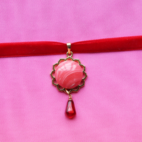 Choker extension, velvet choker, pendant bail and back closure findings are made from recycled nickel free metals and fabric