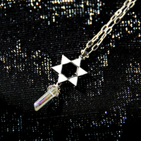 Introducing a one of a kind piece of Judaica for weddings, bat mitzvahs, or any mitzvah you wish to make more memorable with one of a kind Judaica. Silver and white glossed Magen David adorned with polished quartz point presented on silver paperclip chain.