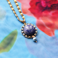 Sodalite Gold Floral Filigree Reversible Chai Necklace