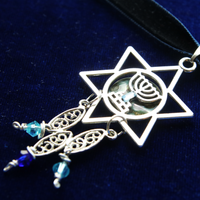 This one of a kind design inspired by the sea and featuring a gorgeous moon-like slice of abalone is the statement choker to end all statement chokers. Dripping with crystal accents adorning salvaged filigree, the unique reversible pendant design allows you to showcase the iridescent abalone side or a crystal-accented menorah magen with the subtle, earthy underside of the natural abalone shell underneath. Either way you choose to wear it, this one of a kind, show-stopping choker will have you turning heads whilst channeling the power of the sea.