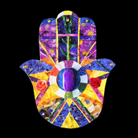 Block out the negativity with this vibrant, immaculately detailed colour block hamsa. Comprised of hundreds of unique floral papercuttings intricately arranged into a gorgeous floral colour block design and featuring a stunning purple and gold marbled bead centrepiece, this hamsa brings positively colourful and invigorating energy to any space.