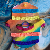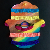 Introducing the protective equivalent of your very own rhinestone space cowboy. Created in honour of the Great Conjunction 2020, the beautiful Fringes of Saturn Hamsa represents Saturn's gorgeous vibrancy via ultraviolet photography, which comprise the paper base for this delicate and intricately crafted hamsa. Hand-woven fringe accents the gorgeous colours of the hamsa base, with crystal finishes to add extra cosmological glamour.