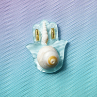 J - Floral Trident Light sea acrylic adorned with iridescent shell, Millefiori bead, and foraged spiral shell from the Kinneret