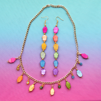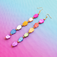 Celebrate Pride Month with a statement piece that radiates equal parts protection and love! This unique hand-carved shell gradient hamsa rainbow cascades from gold hooks to create vibrant statement earrings.
