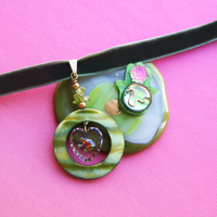 Presented on lush forest green velvet choker. Make this year's seder one to remember with this one of a kind creation