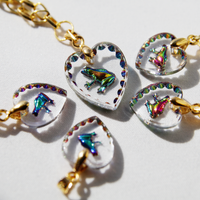 These exquisite heart-shaped Intaglio glass amulets are hand-carved with stunning ever-changing iridescent detail that beautifully transforms when it catches light.