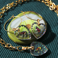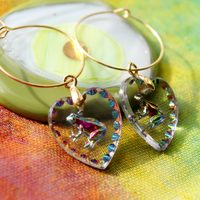 Fierce Frogs Glass Heart Amulet Gold Hoop Earrings