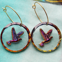 Iridescent Indigo Sunset Glass Heart Yonah of Peace Statement Earrings