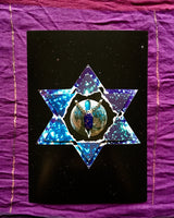 Introduce your very own vibrant, Judeofuturist piece of the cosmos to your home. The Big Blue Cosmic Magen David Print is both a cooling a calming accent in vibrant hues of blue, set on a stunning cosmic background.