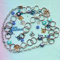 Introducing a new one of a kind protective vintage transformation! This beautifully restored 1970s belt features overlapping loops with geometric dark and light blue evil eyes made from durable enamel. Finished with silver heart enclosure with fully adjustable length up to 114 cm.