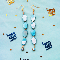 Hand-dyed pearlescent shell hamsas adorned with sky blue evil eye beads for nature-inspired colourful protection.