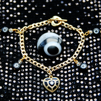Gold Eclipse Heart Evil Eye Charm Bracelet