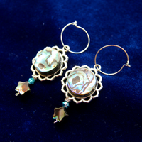 Featuring custom fitted abalone pendant backing and handcut abalone star adornment paired with vintage crystal, these one of a kind earrings channel the sea no matter where you are in the world.