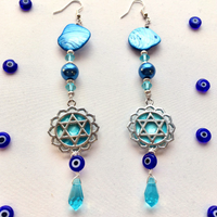 Let these stunning sea-hued beauties transport you to tranquil azure waves, as you bask in their natural sea-inspired materials. Created using salvaged metals, natural shell, freshwater pearl, crystal, and glass, these one of a kind earrings will bring the sea to you no matter where you are in the world.