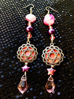 Inspired by long summer nights on the beach where the sunset and sea become one vision in pink watercolour, the stunning Sunset Sea statement earrings are a dreamy one of a kind design. Featuring foraged shell, crystal, and finished off with the most beautiful natural star freshwater pearls, you'll be transported to a sunset on the beach no matter where you are in the world.