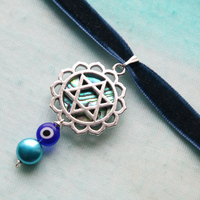 Presented on silver chain, or lush velvet chokers in midnight blue, steel blue, sky blue or any colour you can think up to be handmade to order - your choice! Simply let us know your velvet colour preference in the check out notes.