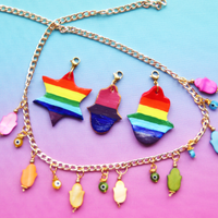 These special detachable custom Hamsa pendants are handmade to order and created with your vision in mind. Whether you'd like them to be reversible and share two different flags in one versatile pendant, or feature one flag or design, you can add your custom detachable pendant to necklaces, charm braceletes, and many other adornments for Pride month and beyond. Would you like your pendant to be presented as a ready to wear necklace? Add an 18k Cuban chain to your order.