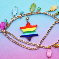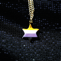 These special detachable custom Magen David pendants are handmade to order and created with your vision in mind. Whether you'd like them to be reversible and share two different flags in one versatile pendant, or feature one flag or design, you can add your custom detachable pendant to necklaces, charm braceletes, and many other adornments for Pride month and beyond. Would you like your pendant to be presented as a ready to wear necklace? Add an 18k Cuban chain to your order.