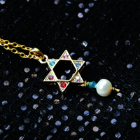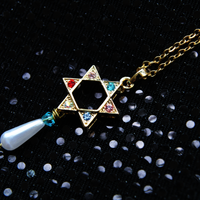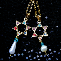Jewish Prism Power Crystal and Pearl Magen David Necklace