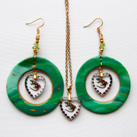 The beauty of the Lucky Lizard glass heart amulets have come together with our custom clay swirl pendants of the Green Ayins of Summer, to bring into creation a special one of a kind pair of statement earrings!