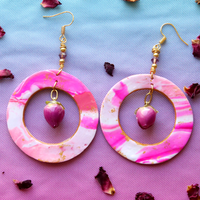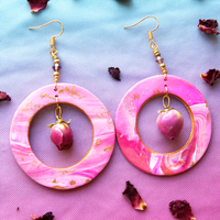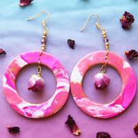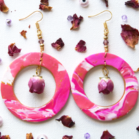 These handmade one of a kind creations bring together custom marbled clay, foraged and preserved rose buds, and signature gold and crystal accents to make these statement earrings look as sweet and delicious as the edible original.