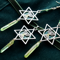 Summon abundance and opportunity with these powerful green gemstone judaica creations. Featuring vintage menorah magen david pendants combined with one of a kind handmade malachite cabachons adorned with vintage crystal, peridot, and green quartz, these beautiful one of a kind earrings will fill your life with verdant beauty.