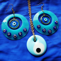 The glazed ceramic pendant is waterproof, however the gold chain will tarnish if exposed to water. If you wish to wear your sky blue ceramic ayin in the water simply transfer it to a water-safe cord or string necklace