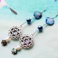 Abalone Sea Star Silver Mayim Magen David Statement Earrings