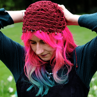 The Judith cap is an adjustable and versatile all-gender piece of wearable art Judaica created in the millenia-old tradition of ritual Jewish headwear with a focus on Jewish pride and personalised customisation. Jewish motifs are embedded into the pattern of the Judith Cap with a Magen David design crocheted into the crown of every cap along with handmade beadwork, filigree, and glass to uniquely adorn each cap and their adjustable straps.
