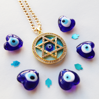 Blue and White Fitted Seashell and Ayin Gold Statement Magen David Necklace