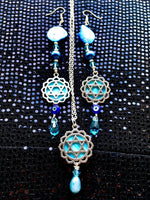 Let these stunning sea-hued beauties transport you to tranquil azure waves, as you bask in their natural sea-inspired materials. Created using salvaged metals, natural shell, freshwater pearl, crystal, and glass, these one of a kind earrings will bring the sea to you no matter where you are in the world.