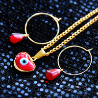 Equal parts protection and love, this simple and elegant handmade glass and gold set evil eye heart necklace makes a lovely layering piece or a statement on its own.