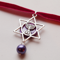 Reversible magen david pendants can be worn facing both directions with either a crystal-adorned menorah or accented shell, crystal, or gemstone facing outwards.