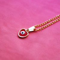 Equal parts protection and love, this simple and elegant gold and enamel evil eye heart necklace makes a lovely layering piece or a statement on its own.