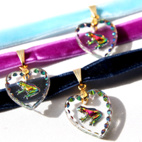 These exquisite heart-shaped Intaglio glass amulets are hand-carved with stunning ever-changing iridescent detail that beautifully transforms when it catches light.