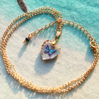Say hello to spring with these beautiful one of a kind iridescent butterfly glass heart amulets.