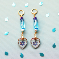 Iridescent Glass Heart Magen David Amulet Beaded Statement Earrings